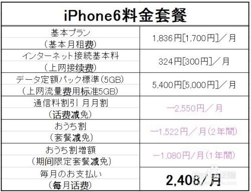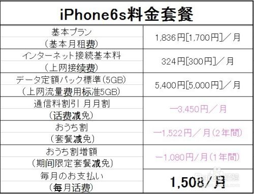 这里推荐个SoftBank的一个套餐(如下图),这是个合约套餐,整体上价格比较便宜,还可以买苹果手机入网。不过也有些弊端,SoftBank的料金套餐虽然便宜,但是门槛也最高。自从2015年4月起、SoftBank规定外国人如果剩余签证不足两年、不能办理手机或者不能享受话费减免。