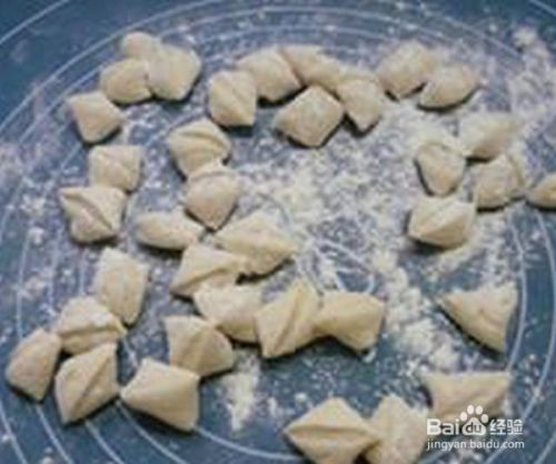 在硅胶垫上撒上适量的面粉,取面团搓成长条切成小块