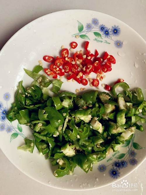 清洗材料,将螺丝椒、指天椒、大蒜切碎。(加入红色的指天椒不仅能提升辣味,也能使整个菜的颜色更加好看。)