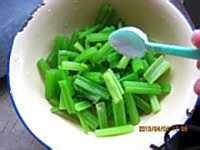1、芹菜焯水时,只要开锅马上捞出来放入凉水里,时间长了发软,不脆。