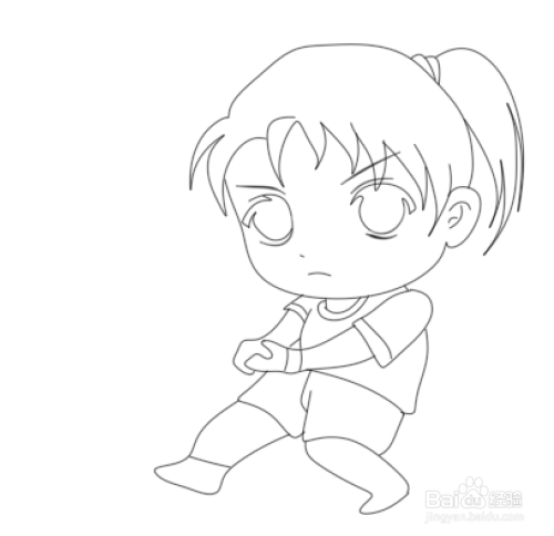 画出人物的下半身,根据接球的动作造型,保证人物的重心处于正确位置。如图所示。