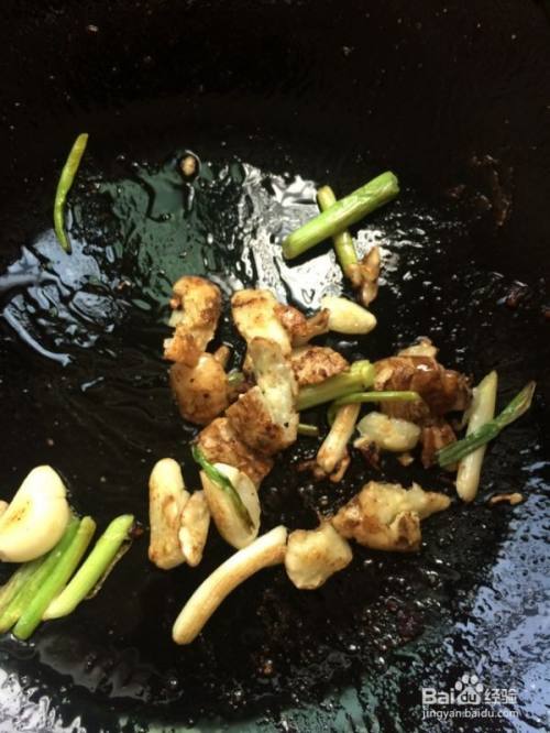 掀开盖放上椒件、葱段翻捞、撒上头抽,花雕爆炒一下装碟。