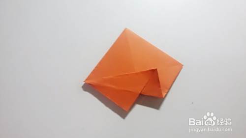 将下面一角沿着中间对角线进行折叠,如图