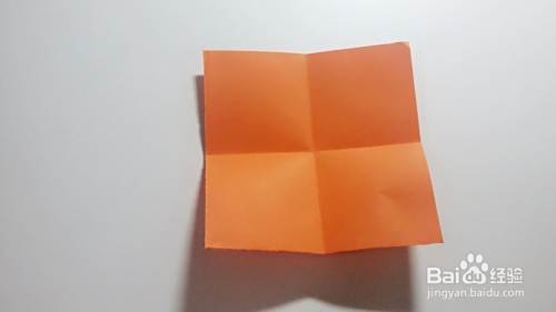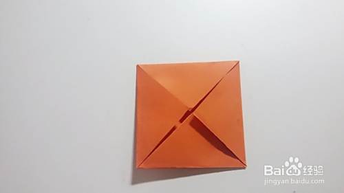 右边一角也沿着中间对叫醒进行折叠,折出痕迹展开,如图