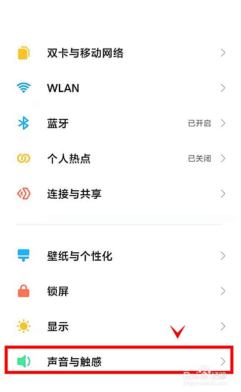 打开红米Note11pro手机【设置】功能——点开【声音与触感】
