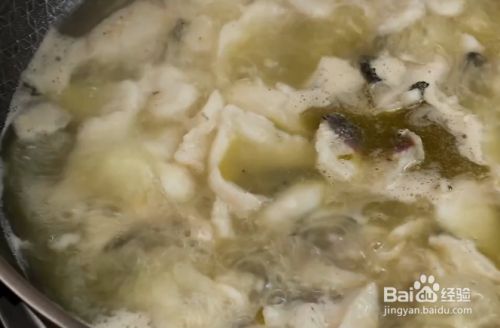 水烧开之后煮2分钟,盛出鱼骨和酸菜,把鱼片放入剩下的汤汁中。