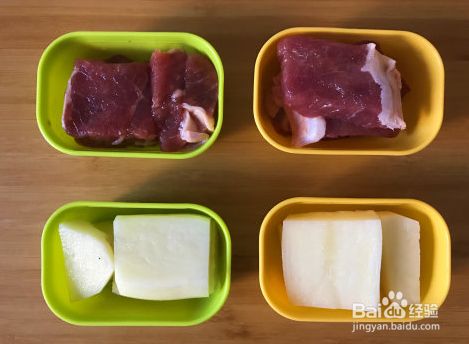 首先把牛肉切成小块放少许酱油腌制一下,牛肉尽量选取里脊的部位,如果妈妈们没有把握,可以直接选取儿童牛排的部位。土豆洗净去皮切块。
