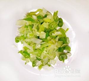 准备一个大碗(一定要大一些的碗,因为是汤面哦)放入切好的葱粒。
