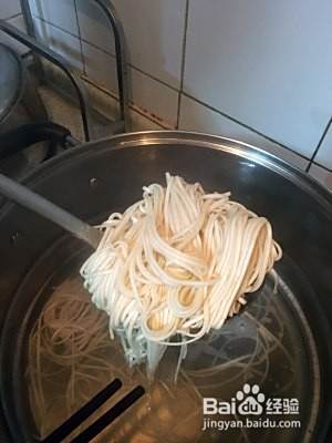 哪个锅里的水先开就在哪个锅里下挂面,煮沸后捞起下到另一个烧开的锅里继续煮。(为什么要用两个锅煮挂面呢?因为挂面在制作过程中会加入一些盐份,用第一锅煮挂面的水做酸汤,口感会差一些。)如果是手工面,就在一个锅里煮面条即可。