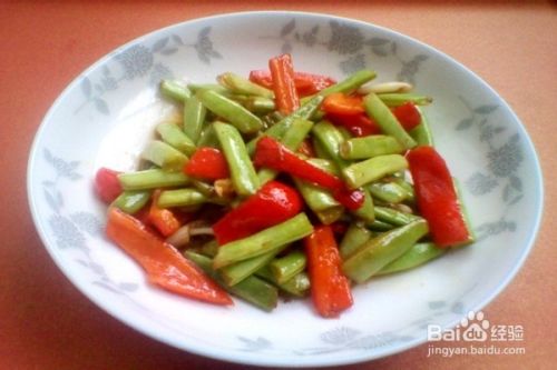 鲜艳欲滴的红色点缀着翠绿色,让人看后不禁馋涎欲滴,这是一盘色香味俱全的甜椒炒四季豆。怎么样您也想吃了吗?和我们一起来看看吧!