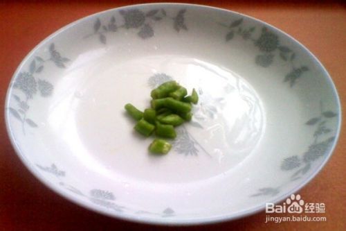 取2个青尖椒,去除根部,清洗干净后切成小段放入盘中。