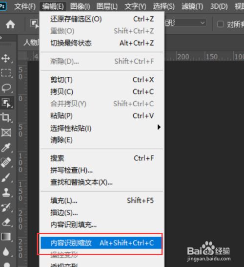 2、编辑—内容识别缩放,保护刚刚存储的选区
