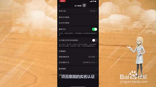 进入支付管理界面后,点击里面的实名认证。