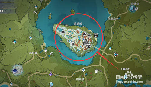 打开地图,传送到蒙德城中