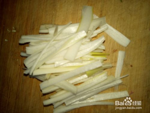 切葱丝:把备好的葱白部分切成5厘米的段,然后切成合适的葱丝。