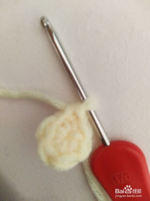 第二圈我们勾6个加针,就是在每个针孔里勾两个短针,总针数为12针。