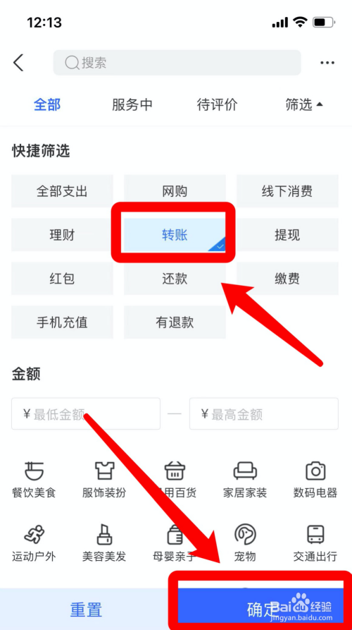 在筛选页面中,选择要查询的账单类型点击“确定”即可。