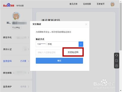 点击【发送验证码】,向手机发送短信。