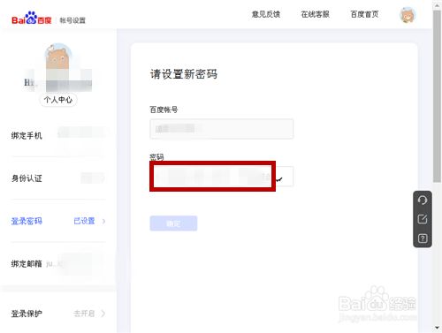 在如图的红框内,输入新密码。