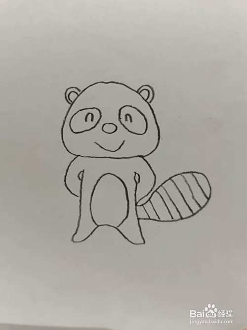 第三步,画上小浣熊的眼睛鼻子和嘴巴。