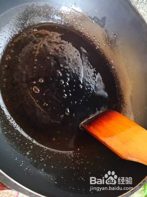 热锅烧油 放五粒冰糖 炒成焦糖色