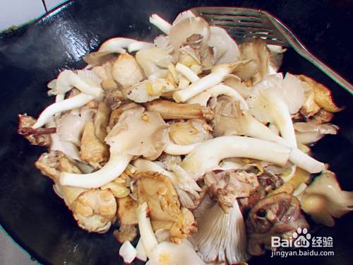 平菇沥干水倒入翻炒,再放入水,平菇本身就有很多水分,喜欢喝汤的水可以多放一些些。看个人。