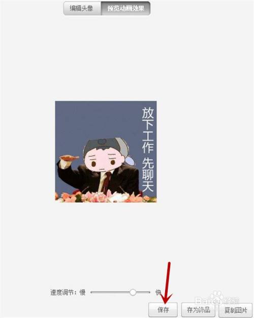 进入领导讲话模板界面,鼠标点击底下的保存按钮,把动画图片保存在电脑中