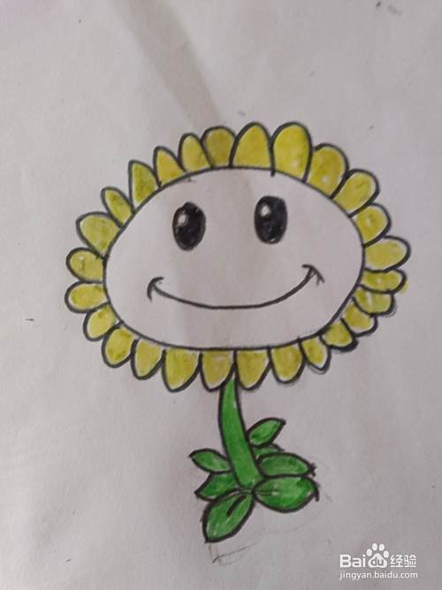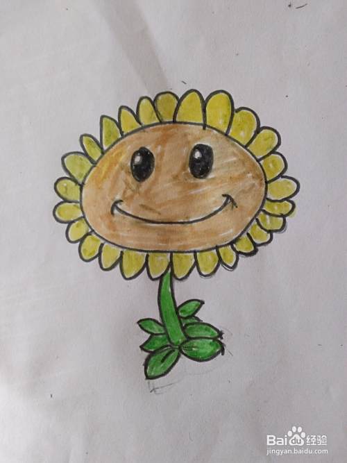 植物大战僵尸这个游戏应该有很多的人玩过,我也是在好多年以前玩的。跟儿子一起去买衣服,看到一个小朋友在用手机玩,又勾起了我的回忆。今天我们来画一颗里面的向日葵。