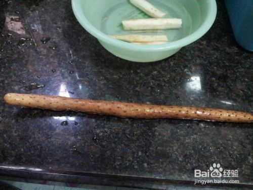 山药刨掉表皮,清洗后切条放入清水中泡一会,避免表面变黑。