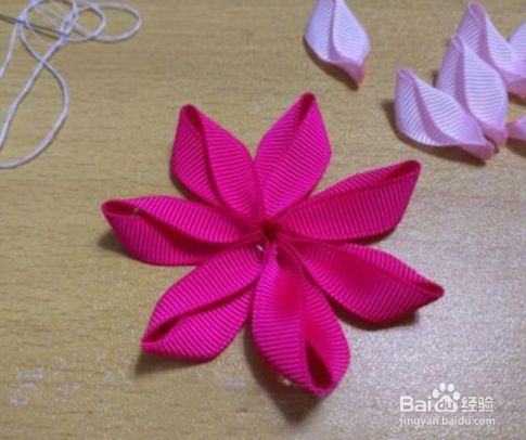 把小的一层在上,大的一层在下,注意花瓣直接要错开放,用热胶枪固定。