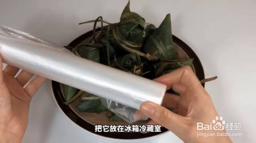 将粽子装入保鲜袋,放入冰箱冷藏室,这样可以保存三天以内。