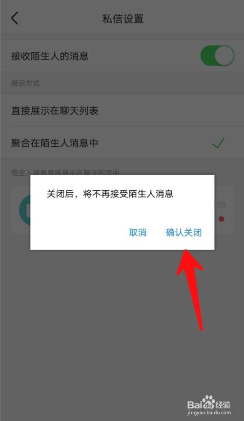 在这有一个接收陌生人消息,默认是开启的,点击确认关闭。