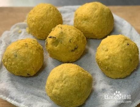 撒上一点点水,然后再滚动裹玉米面,重复这个步骤,直到看不见馅料,隔水放入锅中冷水蒸20分钟即可出锅。