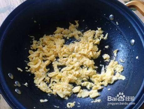 鸡蛋磕入碗中,加上少许料酒将其搅打成液,在炒锅中添上少许食用油,烧热后淋入蛋液,将其炒熟划散盛出,虾仁腌制好之后剁成泥,接着将处理好的鸡蛋液、虾泥和菠菜碎混合;