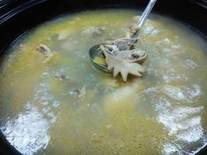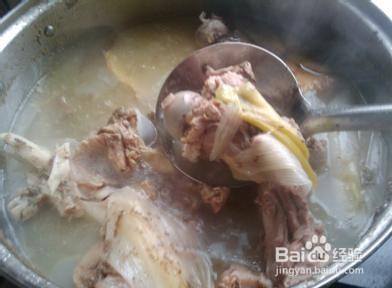 第三步,放入姜片提味去腥,继续煮到汤浓香。