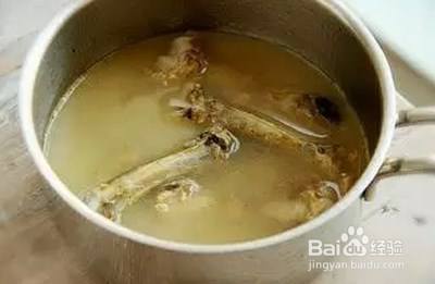 第二步,将鸡骨架放入汤锅,加入适量清水煮沸,转小火熬煮2小时。