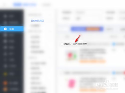 然后,返回首页,在【交易】版块【已卖出的货品】中,复制订单号,如图。