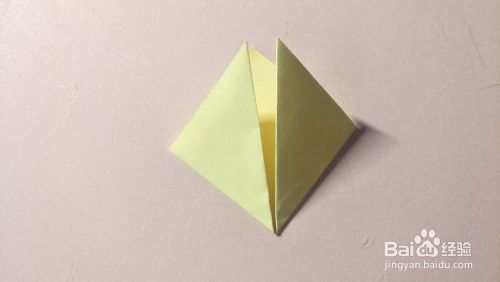 底部两角折向顶角,压出折痕后展开,如图所示: