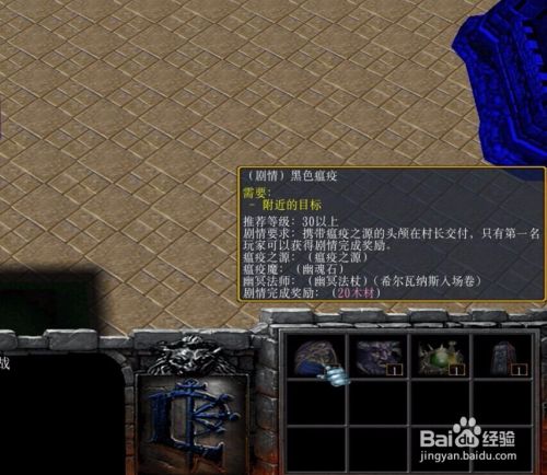 右边的蝎子爆火焰石也是前期升级套装和火焰披风用的,也可以升级在商店购买,寒铁石可以用守家积分加木材换