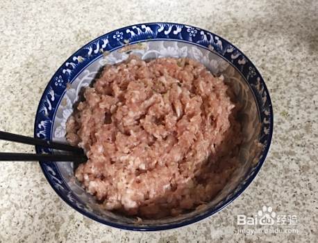放入碗中,加上热水,浸泡10分钟,捡出葱姜不要,在肉馅中放入蚝油、香油和少许的食盐,磕入一个鸡蛋,将其充分搅打均匀,然后葱姜水加入在其中;