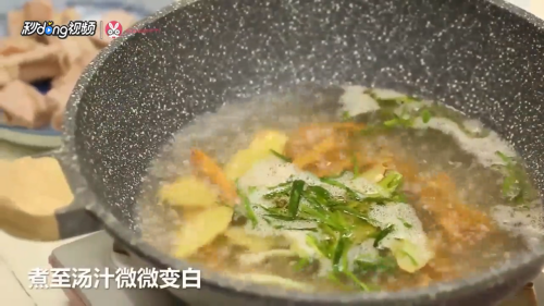 13加入白胡椒粉、食盐和味精,煮至水开即可捞出。