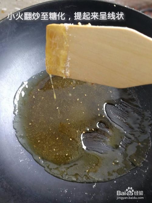 小火翻炒至糖化,提起来呈线状即可。