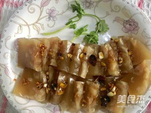 8放入冰箱冷藏一夜之后就成了肉皮冻,切的时候刀上和盘子里都不要有水。
