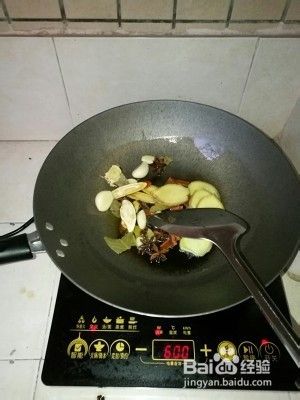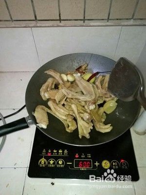 热锅加油,加入香料爆香,放入鸭掌鸭翅翻炒5min左右。