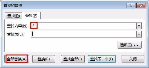 第四步:在查找内容框中输入要查找的内容,替换框中不用输入,单击“全部替换”按钮。