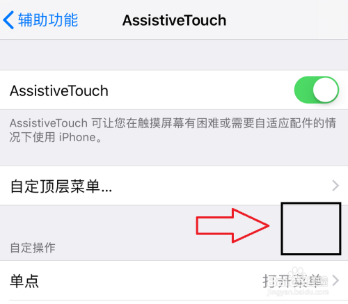 在新出现的手机界面的最上方,我们把“AssistiveTouch”右侧的开关打开。