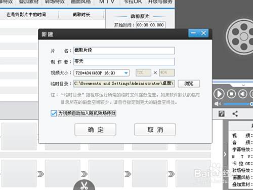 下载安装爱剪辑后启动该应用程序,在新建对话框中设置相关信息后点击确定按钮。