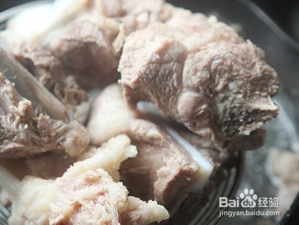 猪扇骨洗净后斩大件,放到锅里加水大火煮开。