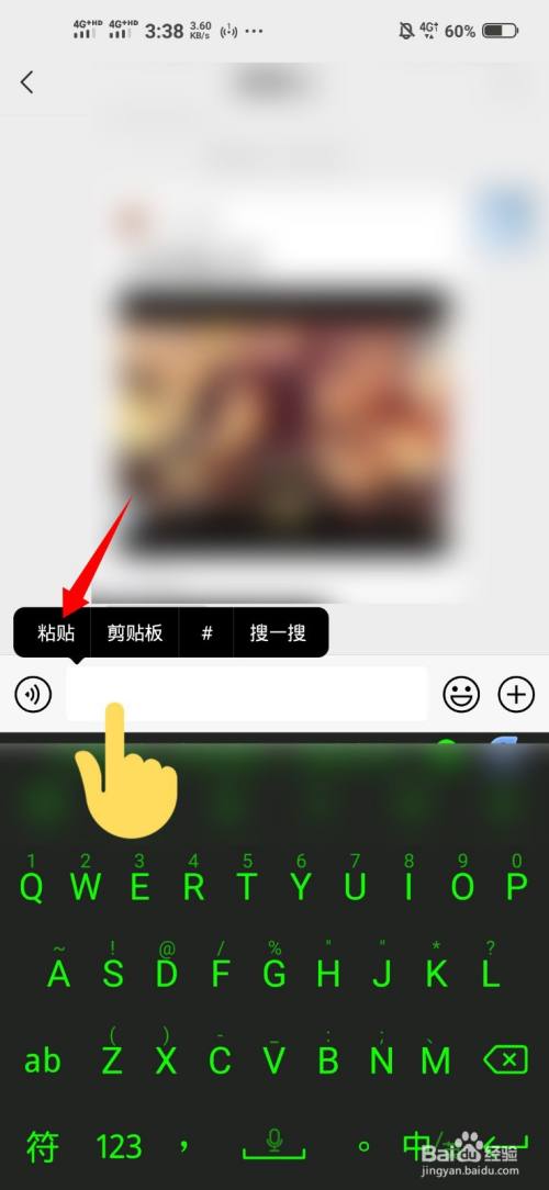 在底部输入框中单指长按,在弹出的工具栏里点击粘贴。