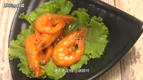 放入虾段,淋入水,淀粉出锅即可。